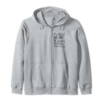 Show moreEmbrace your individuality with the Beautiful and Smart, and Deeply Selfish Funny Personality Zip Hoodie. This charming zip hoodie is not just a piece of clothing; it's a statement that celebrates self-love and uniqueness. Crafted with a classic fit and featuring a twill-taped neck, it weighs 8.5 oz, combining comfort with durability, making it the perfect accessory for both casual outings and cozy evenings at home.
