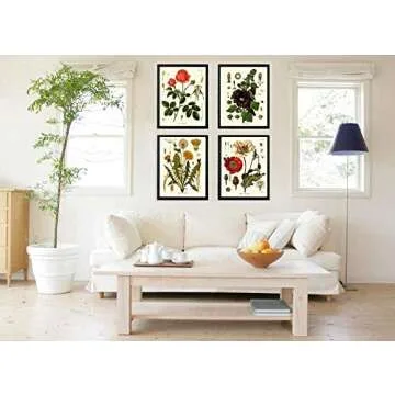 Beautiful Botanical Flower Wall Art Home Decor Set of 4 Prints