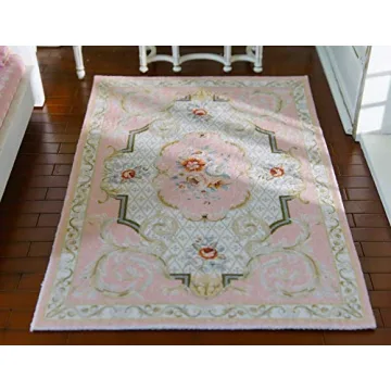 Beautiful Chic French Swirls Pastel Pink Floral Dollhouse Miniature Rug (5.3 X 7.8)