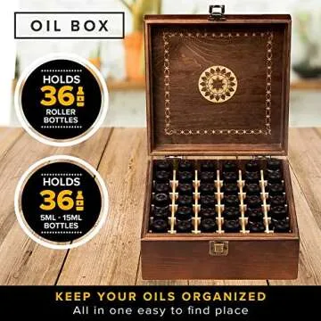 Beautiful Essential Oil Storage Organizer Box 36 Bottle - Holds 5-15ml &10ml Roller Bottles - Free Roller Bottle Opener & 192 EO Labels - Wooden Oil Case Holder