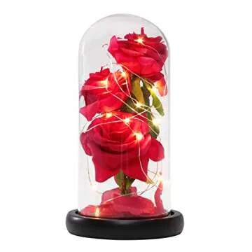 Show moreEmbrace the magic of everlasting love with the Beauty and The Beast Rose, brought to you by FunPa. This enchanting piece, inspired by the timeless tale, features a captivating 3PC design that includes a stunning forever flower encased in a glass dome. Adorned with delicate fallen petals and set upon a charming wooden base, this decorative masterpiece is not just a wonderful conversation starter but a radiant symbol of affection and commitment. The warm white LED light brilliantly illuminates the rose, creating an ethereal ambiance that makes every moment feel special. Perfectly designed, this rose serves as a memorable gift that captures the essence of love and beauty, making it an ideal present for your loved ones on any occasion.