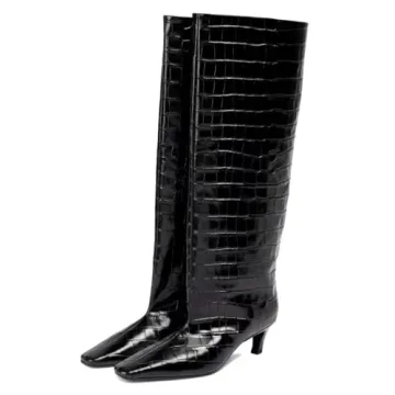 Show moreStep into the world of chic sophistication with the stunning Beauty Cry Crocodile Black Knee High Boots. Designed for the modern woman, these stylish boots feature a square toe and a elegant low kitten heel that gently lifts your height without compromising on comfort. With a heel height of 5cm/1.97", these boots strike the perfect balance between fashion and practicality. Available in luxurious faux leather or soft faux suede, they proudly showcase a sleek and versatile design that seamlessly integrates into any wardrobe.