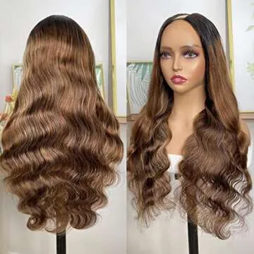 Show more This exquisite ombre blonde highlight body wave U-part wig offers an easy and stylish alternative for those looking to enhance their natural beauty with minimal effort. Crafted from unprocessed Brazilian virgin human hair, this wig is not only durable but designed for maximum comfort and versatility. Featuring a perfect blend of honey blonde color and body wave texture, it allows for quick styling in just 5 minutes, and can be easily secured in place without needing to leave out much of your natural hair, making it suitable for daily wear or special occasions.