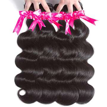 Show moreExperience the luxurious touch and enchanting beauty of our Beauty Princess Body Wave Human Hair Bundles. Crafted from 100% premium Brazilian human hair, this exquisite set includes four bundles featuring a double weft design for enhanced durability and longevity. Available in lengths of 12, 14, 16, and 18 inches, these body wave bundles not only provide volume but also allow you to create stunning hairstyles with natural-looking movement and bounce. The beautiful waves flatter every face shape, making this hair the perfect canvas for your styling creativity.