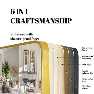 Beauty4U 65" x 22" Rounded Frame Full Length Mirror with Stand, Gold Wall Mounting Full Body Mirror, Metal Frame Full-Length Mirror for Living Room, Bedroom