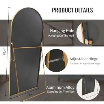 Beauty4U 76" x 37" Large Arch Full Length Mirror with Stand, Gold Wall Mounting Full Body Tempered Mirror, Metal Frame Full-Length Mirror for Living Room, Bedroom