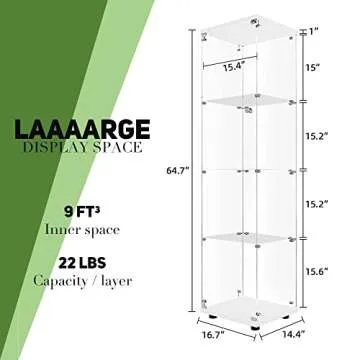 Beauty4U Glass Display Cabinet with 4 Shelves, Curio Cabinets for Living Room, Bedroom, Office, White Floor Standing Glass Bookshelf, Quick Installation