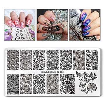 BEAUTYBIGBANG Nail Stamping Plates Stamper Scraper Kit Sets - 5pcs Nail Art Stamp Templates Image Plate with 1 Stamper and 1 Scraper Nail Art Tools