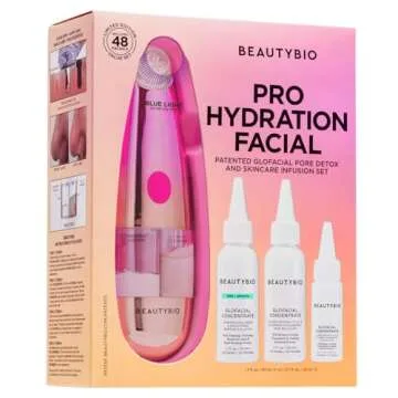 Transform your home skincare routine with the BeautyBio GLOfacial Pore Detox and Skincare Infusion Set, a meticulously designed device that elevates your self-care regimen to spa-like levels. This revolutionary hydro-facial tool not only purifies your skin by removing impurities, excess oil, and congestion but also infuses your skin with hydration and nutrients. Infused with the finest Clarifying and Firming GLOfacial Concentrates, enriched with Salicylic Acid, Hyaluronic...