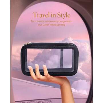 Show moreThe BEAUTYGOODIES Clear Travel Makeup Bag in a stunning Midnight Black is the ultimate solution for your on-the-go beauty essentials. Designed with frequent travelers in mind, this medium-sized bag effortlessly combines style with functionality, ensuring that your cosmetics are organized, accessible, and secure during every journey. Its sleek transparent design allows you to quickly view contents, eliminating fumbling through your bag. With this makeup bag, you can be both chic and practical.