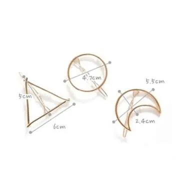 BeautyMood 6pcs Minimalist Dainty Gold Silver Hollow Geometric Metal Hairpin Hair Clip Clamps,Circle, Triangle and Moon