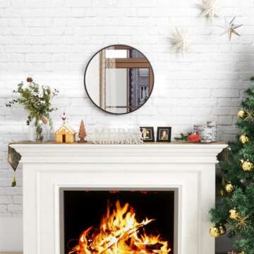BEAUTYPEAK Round Mirror, Metal Frame Circle Mirror, Wall Mounted for Entryway, Bathroom, Vanity, Living Room