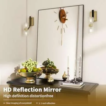 BEAUTYPEAK Wall Mirror 20" x 28" Rectangular Bathroom Mirror with Metal Frame, Hangs Horizontal or Vertical for Living Room Bedroom Bathroom Entryway, Black