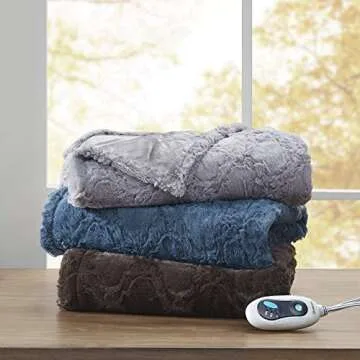 Introducing the luxurious Beautyrest Brushed Long Fur Electric Throw Blanket, designed to envelop you in warmth and comfort during the cold winter months. This beautifully crafted blanket showcases an eye-catching ogee pattern in a soothing grey hue, adding a touch of elegance to your home décor. Measuring 50 inches by 60 inches, it is perfectly oversized to keep you cozy while snuggling up on the couch or adding warmth to your bed. Its ultra-plush faux fur provides a soft...