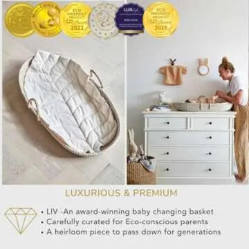 While many changing baskets exist on the market, the Bebe Bask stands out due to its artisan craftsmanship, eco-friendly materials, and multifunctional design. Unlike many basic changing mats, it provides superior support and comfort with its extra-thick memory foam and luxurious bamboo cover. Plus, the inclusion of a vegan leather changing mat elevates the user experience, setting it apart from other options that often lack this level of thoughtfulness.