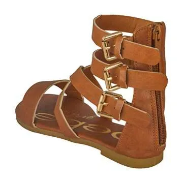 bebe Girls Toddler/Little Kid Wide Strap Flat Gladiator Sandals with Back Zipper and Buckles 9 Cognac