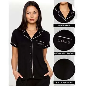 bebe Womens 2 Piece Short Sleeve Button Down Shirt and Long Pants Bridesmaid Pajamas Set (Black, Medium)