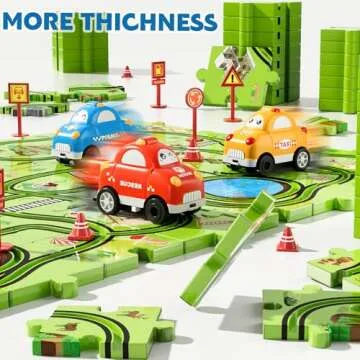 Show more Introducing the **Beby Buty 64 Pc Puzzle Race Track Car Set**, an enchanting playtime experience designed for children aged 3 to 6 years. This innovative toy set combines creativity and fun, featuring 64 vibrant city-themed puzzle pieces that allow kids to build their very own race tracks. With an assortment of 6 colorful road signs and 3 sleek cars, young minds can embark on exciting adventures as they construct unique track layouts, sparking their imagination and enriching their play. This flexible puzzle set is not just a toy; it’s a platform for creativity, learning, and exploration!