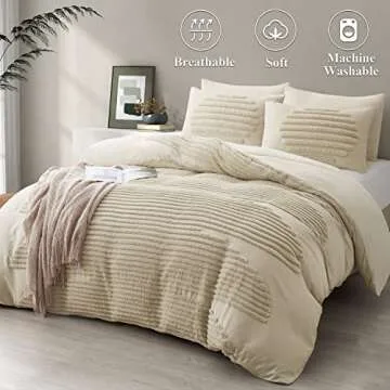 This duvet cover set features a chic bohemian design, highlighted by embroidered tufts arranged in a captivating geometric pattern, adding a sophisticated allure and modern touch to any bedroom decor. Its unique textured appearance effortlessly elevates your space while keeping the focus on style and quality. The lightweight construction provides optimal warmth without the bulkiness, making it suitable for year-round use.