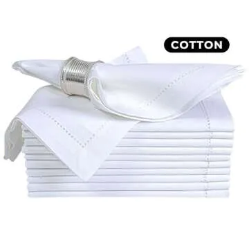 BEDDING CRAFT Set of 12 Cotton Cloth Dinner Napkin 18x18 White with Hemstitched Mitered Corners – Perfect for Wedding Dinner Parties and Table Decorations, Cloth Napkins