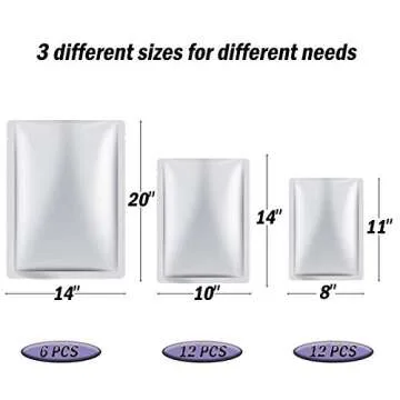 Bedexut 30 Pieces 3 Sizes Mylar Bags for Long Term Food Storage,4.5 Mil Thick; Mylar Aluminum Foil Flat Heat Sealing Bags with Rounded Corners,Keep Fresh Vacuum Sealer Pouch for Food Coffee Tea Beans