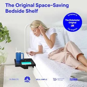 BedShelfie Bedside Shelf for Bunk Bed & Top Bunk, College Dorm Room Essentials, Clip On Nightstand, Bed Side Table Tray Organizer - Cup Holder, Black