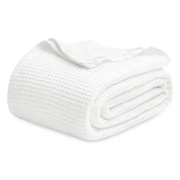 Bedsure 100% Cotton Waffle Weave Blanket - Queen Size, Breathable & Soft for All Seasons