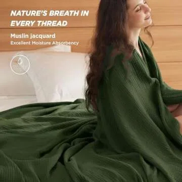 Show moreDiscover unparalleled comfort with the Bedsure 100% Cotton Muslin Blanket in a beautiful Olive Green. This king-sized blanket, measuring 108x90 inches, features an innovative 4-layer design that ensures exceptional breathability, allowing for maximum airflow while keeping you cozy throughout the seasons. Whether it's a chilly winter night or a warm summer evening, this blanket strikes the perfect balance of warmth and lightness, making it ideal for those who seek versatility in their home bedding.