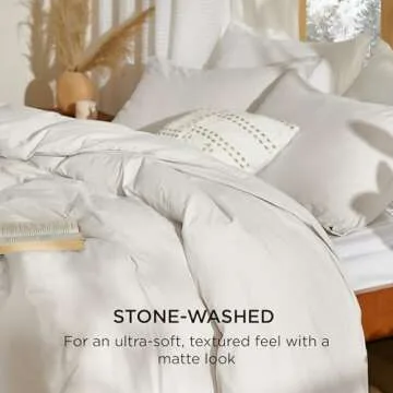Bedsure 100% Stone Washed Cotton Duvet Cover King - Linen Grey Minimalist Cotton Duvet Cover Linen Like - 3 Pieces GentleSoft™ Plain Simple Bedding Set with 2 Pillow Shams (Linen Grey, King, 104"x90")