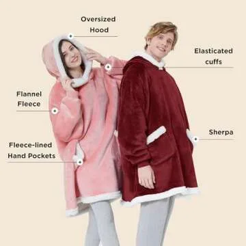 Show more The Bedsure Sherpa Fleece Blanket Hoodie has earned its spot as a top contender in the world of comfort, recently winning Good Housekeeping’s 2024 Best Bedding Award. With its exceptional warmth and ultra-soft flannel exterior, it serves as the ultimate cozy companion during the colder months. Perfectly designed for lounging at home or snuggling up while watching your favorite movie, this hoodie blanket offers an unparalleled experience that endorses relaxation and warmth.