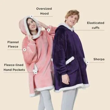 Show moreIntroducing the Bedsure Blanket Hoodie, the wearable blanket that seamlessly combines warmth and livability. Awarded Good Housekeeping’s 2024 Best Bedding Award, this innovative hoodie is designed to envelop you in ultimate comfort while you go about your day. Crafted with an ultra-soft flannel exterior and a plush sherpa lining, this blanket hoodie makes chilly nights feel like a warm hug. Whether snuggling on the couch or moving about the house, this cozy piece promises to keep you snug and stylish, confirming it as a perfect addition to your winter wardrobe. Also available in multiple sizes and colors, it suits everyone in the family, providing an extraordinary gift option for special occasions like birthdays and holidays!