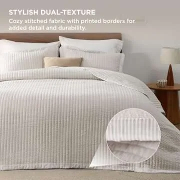 Bedsure Bone Bedspread Coverlet King Size - Lightweight Soft Bedding Set for All Seasons, Corduroy Pattern Quilt Set, 3 Pieces, 1 Quilt (106"x96") & 2 Pillow Shams (20"x36"+2")