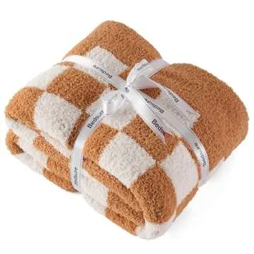 Bedsure Checkered Throw Blanket for Couch - Super Soft, Cozy & Warm Knit Blanket, Breathable, Lightweight & Fluffy for Bed & Sofa, Checkered Camel, 50x60 Inches