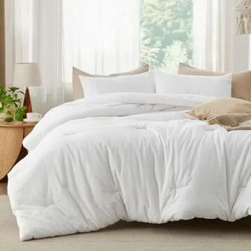 Bedsure Comforter Set King Size - Cotton Fabric with Microfiber Inner Fill, White Soft Bed Set for All Seasons, 3 Pieces, 1 Comforter (104" x 90") and 2 Pillow Cases (20" x 36")