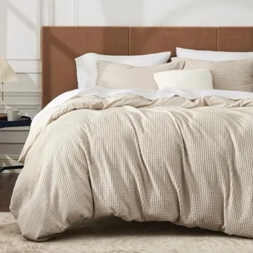 Bedsure Queen Cotton Duvet Cover - 100% Soft Waffle Weave Bedding