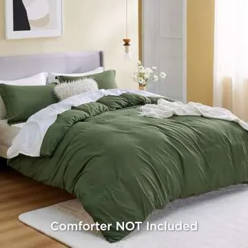 Show more Transform your bedroom into a serene sanctuary with the Bedsure Duvet Cover Queen Size. This luxurious duvet cover set is crafted from ultra-soft double brushed polyester microfiber, ensuring an unparalleled softness that beckons you to snuggle in. The smooth surface is not only breathable, allowing for comfortable sleep, but also silent; say goodbye to rustling and hello to undisturbed nights. This stylish duvet cover set in chic Olive Green is perfect for both children's and adults' bedrooms, providing a blissful atmosphere with just the right touch of style.