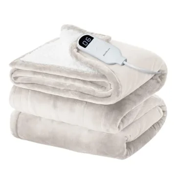 Show more Transform your chilly nights into a cozy retreat with the Bedsure Twin Electric Blanket, your ultimate source of warmth and comfort. Meticulously crafted, it features a wonderfully soft 220 GSM flannel top and 200 GSM premium sherpa, inviting you to snuggle in for luxurious relaxation. With neat stitching that enhances its aesthetic appeal and durability, this electric blanket is designed to last through the seasons while maintaining its vibrant colors due to a cutting-edge dyeing technique. Plus, it’s machine washable for easy care and maintenance.