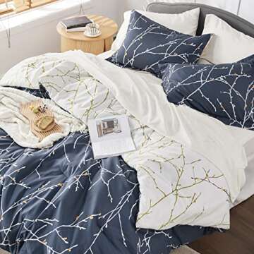 Bedsure King Comforter Sets - 7 Pieces Floral Navy Blue Bed Set, Tree Branch Pattern Printed Bed in a Bag King with Comforter, Sheets, Pillowcases & Shams