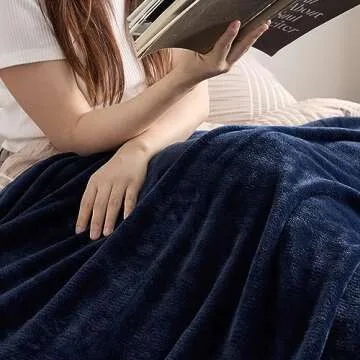Show more Introducing the Bedsure Navy Fleece Blanket, the ultimate addition to your cozy nights. This queen-sized number (90x90 inches) is designed to provide warmth and comfort while maintaining that plush softness you’ve been dreaming about. Crafted with enhanced premium microfiber, it offers a thicker and softer experience than traditional flannel blankets, redefining luxury in everyday comfort. Perfect for chilly evenings or as an extra sheet during colder nights, it wraps you in a gentle embrace that you won’t want to part with.