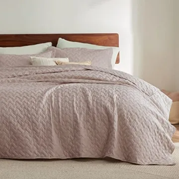 Show more Introducing the Bedsure Queen Quilt Bedding Set, a beautifully crafted bedding solution designed to be a staple in your home regardless of the season. This Lightweight Summer Quilt in a stunning Dusty Rose color offers both aesthetic appeal and functional versatility. Measuring 90" x 96", this quilt is sized perfectly for Full or Queen beds, ensuring a neatly draped appearance that not only enhances your decor but also completely conceals the box spring for a polished, finished look.