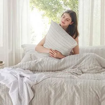 Bedsure Striped Boho Duvet Cover King Size - Tufted Boho Bedding Set, 3 Pieces Shabby Chic Home Bedding for All Seasons, Includes 1 King Duvet Cover & 2 Pillowcases (Light Beige, 104" x 90")