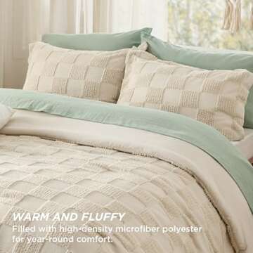 Transform your bedroom with the luxurious Bedsure Twin/Twin XL Size Comforter Set, designed in a beautiful beige hue with a chic boho tufted pattern. Adorned with a captivating jacquard checker design and a faux pilling effect, this comforter set effortlessly elevates the aesthetic of any sleeping space. Perfect for enhancing both comfort and style, it combines an inviting visual appeal with high functionality, making it the ideal addition to your home decor.