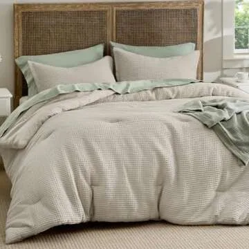 Bedsure Waffle Comforter Set King, Linen Soft Cotton Bedding, Waffle Weave Bed Set, 3 Pieces, 1 Comforter (104"x90") and 2 Pillow Shams, Premium Cotton Cover with Polyester Fill for All Seasons