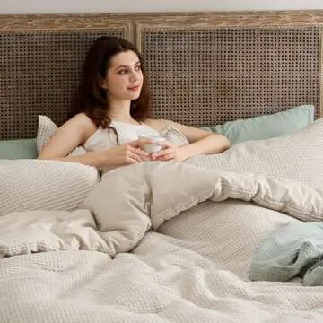 Bedsure Waffle Comforter Set Queen, Beige Soft Cotton Bedding, Waffle Weave Bed Set, 3 Pieces, 1 Comforter (90"x90") and 2 Pillow Shams, Premium Cotton Cover with Polyester Fill for All Seasons