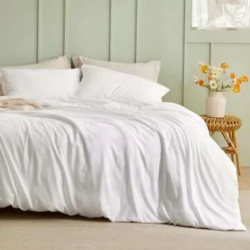 Bedsure White Duvet Cover King Size - Polyester & Rayon Derived from Bamboo Cooling Duvet Cover Set (104" x 90"), 3 Pieces with 2 Pillow Shams, Comforter Not Included