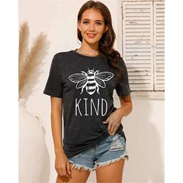 Bee Kind T Shirts Women Funny Inspirational Teacher Fall Tees Tops Cute Graphic Blessed Shirt Blouse (XL, Gray)