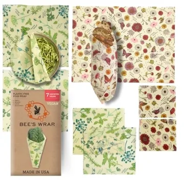 Show moreDiscover the ultimate kitchen companion with the Bee's Wrap Reusable Vegan Alternative to Beeswax Food Wraps. This 7-piece variety pack is designed to revolutionize your food storage while embracing eco-friendliness. Made in the USA, these wraps function as a sustainable and stylish alternative to traditional plastic wraps, ensuring your food stays fresh without sacrificing your commitment to the environment. Each wrap is crafted from high-quality organic cotton, plant-based wax, organic plant oil, and tree resin, ensuring you're not only caring for your food but also for the planet. Whether you're wrapping a wedge of cheese, covering a leftover pie, or storing homemade bread, Bee's Wrap is your go-to solution for greener living, all while being easy to use and maintain.