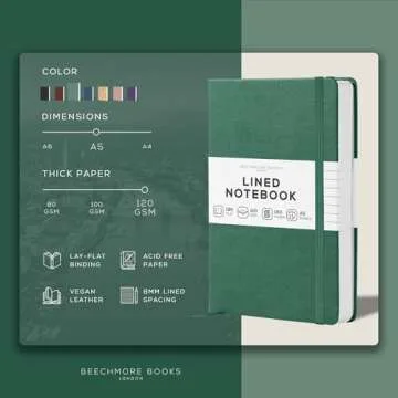 BEECHMORE BOOKS Lined Journal Notebook, 5.8 x 8.3 inch, A5 160 Lined Pages, Hardcover Leather Journals for Women, Men, Writing and Notebooks for Work - 120 GSM Thick Paper, Gifts Box Included