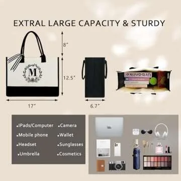 Show more Introducing the BeeGreen Canvas Tote Bag, a perfect blend of elegance and functionality designed to elevate your gift-giving experience. Made from 100% natural cotton canvas, this tote bag is not only durable but also eco-friendly, making it an excellent choice for those who are environmentally conscious. Its spacious dimensions of 17 inches wide, 12.5 inches tall, and a 6.7-inch gusset provide ample space for all your daily essentials, be it books, groceries, or beach necessities. Featuring a stunning monogram embroidery font, you can personalize this bag to make every gift feel truly special. Choose this as a thoughtful present for moms, teachers, friends, or anyone who deserves a touch of elegance in their day-to-day life!