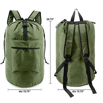 Introducing the BeeGreen Moss Green Laundry Backpack Bag, the ultimate solution for all your laundry needs! Measuring an impressive 15.75" x 28.75", this extra-large bag is designed to hold 3-4 loads of laundry, making it perfect for bustling college dorms, busy families, and outdoor adventures. Crafted from 100% rip-stop polyester, this lightweight yet robust laundry bag is reinforced with durable webbing and 'X' stitching, ensuring it can withstand heavy loads while keeping your belongings...